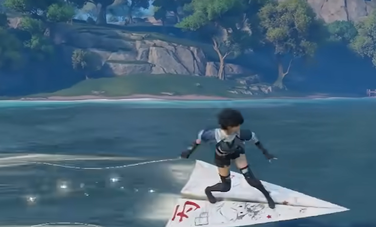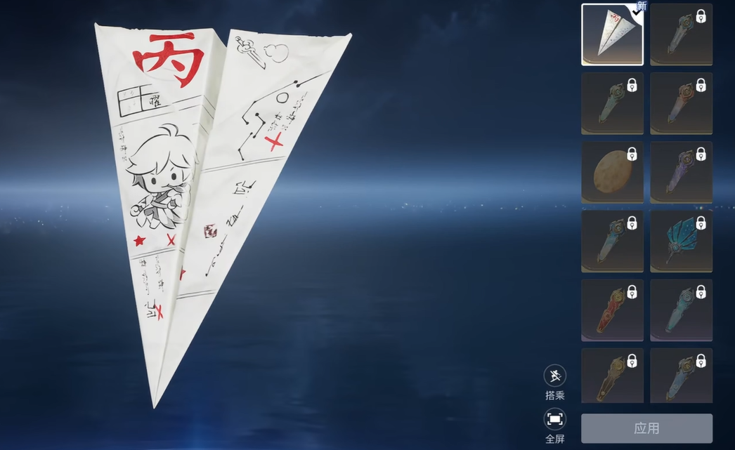进入游戏商城后,该载具以独立图标形式呈现,模型主体为经典折纸造型,机身上印有Q版李白形象,风格清新活泼。使用时角色保持直立姿态,符合多数载具的基础交互逻辑。值得注意的是,其二段跳跃动作未配置专属光效或音效反馈,属于功能型设计,侧重实用性而非炫技表现。