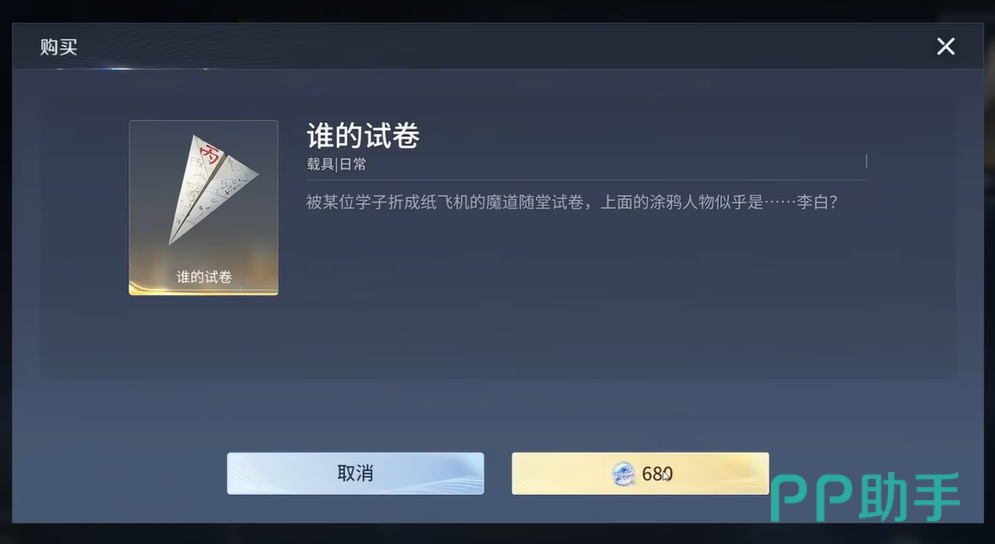 “叫谁的试卷”这一命名巧妙融合学生时代典型行为符号——试卷折叠成纸飞机的瞬间,唤起广泛共鸣。整体设定并非单纯外观复刻,而是通过名称、形态与动态反馈三者协同,构建出具有叙事张力的沉浸式体验。建议玩家在决策前重点观察加速状态下拖尾光效的实际表现,结合自身审美偏好与使用习惯综合判断是否入手。
