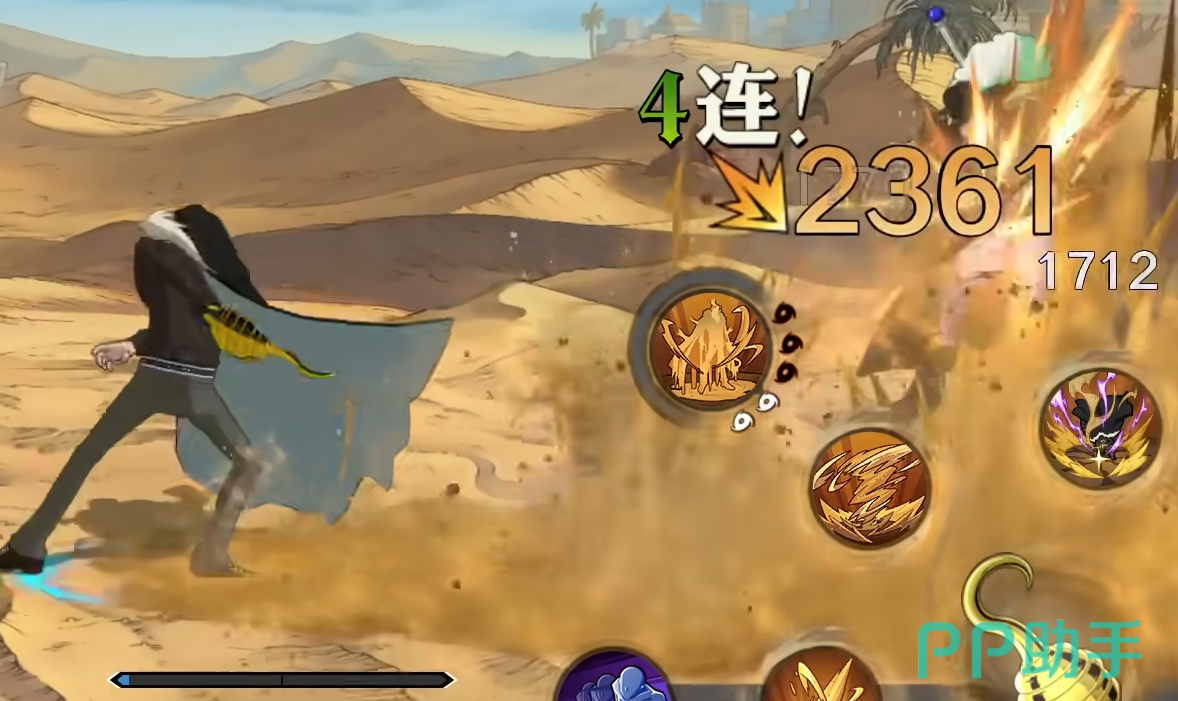 强化二段附带大范围爆炸伤害与击飞效果,落地生成沙坑;三段在跳跃劈击基础上叠加元素化属性,钩刃抓取判定同步保留;四段为追踪型元素月牙斩,具备小幅自动索敌能力。被动效果「脱水」由月形沙丘触发,可叠加至三层:首层降低目标移速;二层在减速基础上提升所受伤害;三层需在强化状态下达成,触发「干枯」状态——目标模型产生视觉畸变,若为热血系角色则损失25点热血值,若为华丽系角色则扣除1颗豆子及25点精力值。