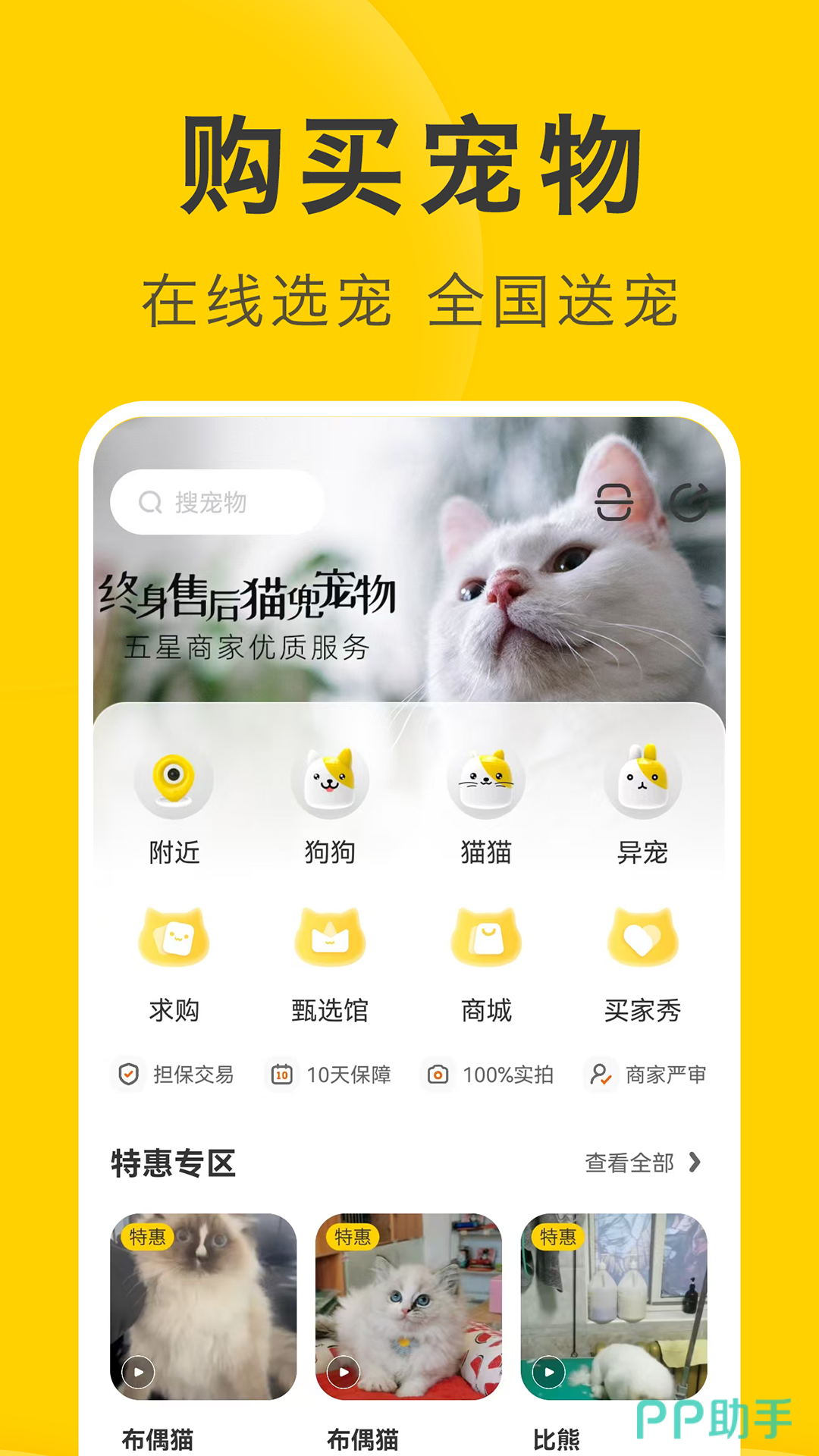这款软件是专门做宠物交易的,能够让你足不出后就能在线上挑选到自己喜欢的宠物,而且可以直接配托运,支持全国配送。这里的每一只猫猫狗狗都是有做疫苗和驱虫的,健康报告可以随时查看,支持在线视频挑选宠物,确保所见即所得。