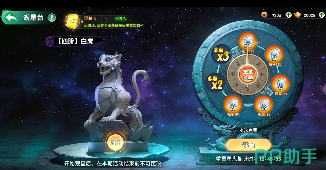 在观星台操作中,玩家当日仅能从已解锁的镇兽池中选定一组目标,选定后不可更换。随后通过轮盘抽取获取对应资源。每日最多可进行7次抽取,单次碎片掉落概率固定为15%,消耗元宝作为抽取成本。值得注意的是,随着当期抽取次数增加,高价值资源的综合获取率呈阶梯式上升趋势,但单次收益峰值出现在第1次与第7次——此时单位元宝投入产出比最优,整体资源累积效率最高。