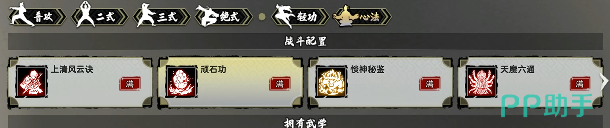 心法组合是发挥“天魔传承”上限的关键。首选必配心法为“天魔六通”,其与功法存在专属协同机制,可显著强化技能基础属性。在此基础上,建议同步装配“惔神秘鉴”与“五恒天经”。前者核心价值在于暴击触发后缩短心法冷却时间,保障技能释放节奏不断档;后者则侧重提升角色生命上限及内力转化效率,有效缓解该流派防御偏弱、续航承压的问题。若追求更高综合强度,可追加“清风云决”,进一步优化伤害循环稳定性与生存容错率。
