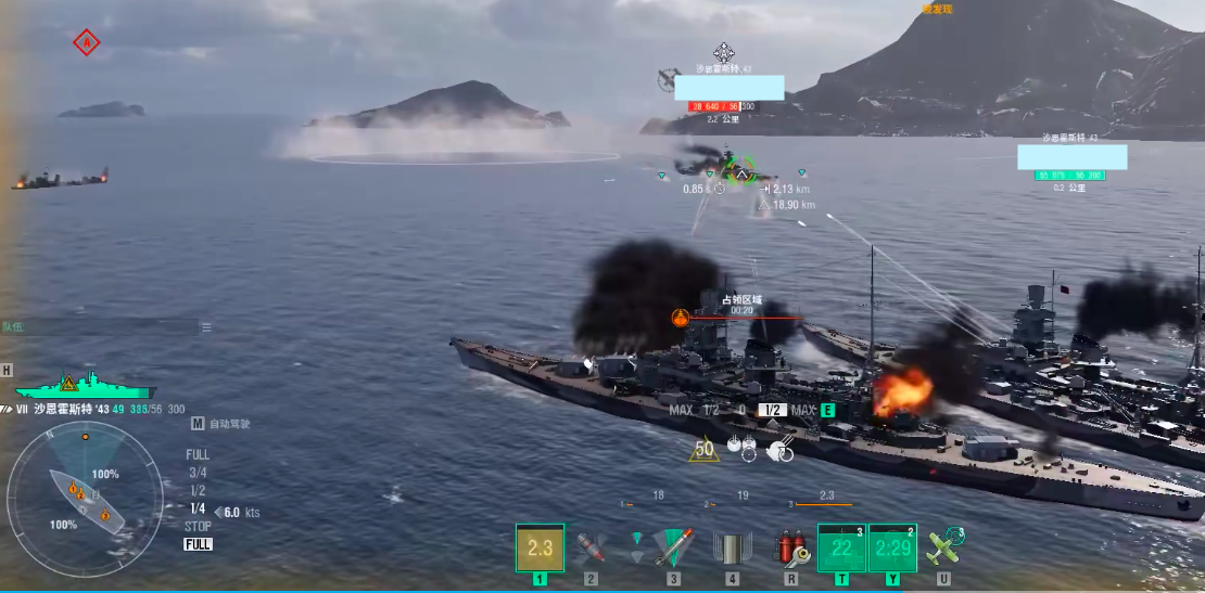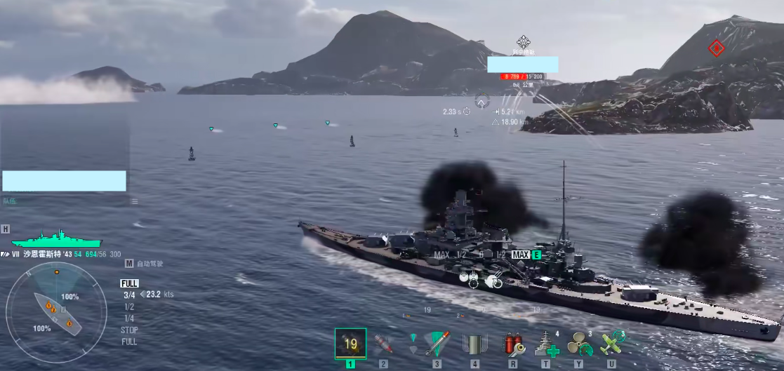 战术层面,沙恩霍斯特更适配快节奏高强度对抗场景。推荐采用3至4人协作编组:由1名玩家操作护卫舰负责机动牵制与视野布控,其余2至3名玩家集中配置沙恩霍斯特,形成多点同步齐射的“重炮集群”。该配置可在开局阶段迅速建立火力优势,压制敌方前排舰艇并压缩其阵型调整空间。但面对以消耗战、拉锯战为主的持久型关卡时,其高能耗、低续航特性易导致输出断档,此时应优先替换为持续作战能力更强的舰种。