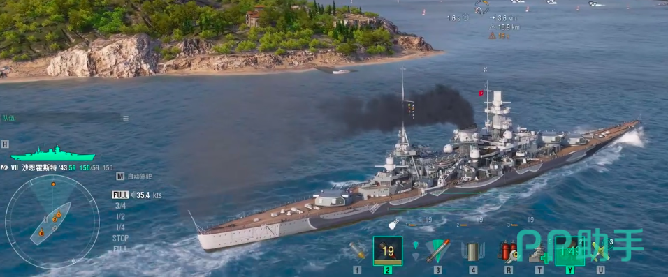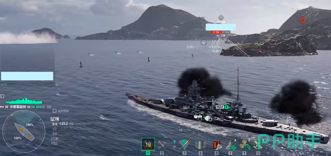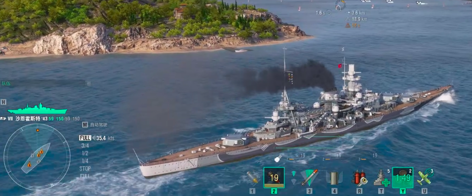 沙恩霍斯特原型取材自1939年德国建造的同名战列巡洋舰,游戏内设定为满载排水量32000吨、舰长235米、舷宽30米的重型水面平台。武备系统包含9门280mm主炮、12门150mm副炮、14门105mm高射炮及16门37mm机关炮,形成覆盖中远距离压制与中低空防御的立体火力网。其设计侧重舰队护航与正面火力投送,在航母战斗群中承担前排输出与防空屏障双重职能。需注意的是,该舰干舷较低、适航性偏弱,在风浪等级较高的海域中机动性与生存稳定性会明显下降,因此不建议部署于气象条件恶劣的高难度图谱。