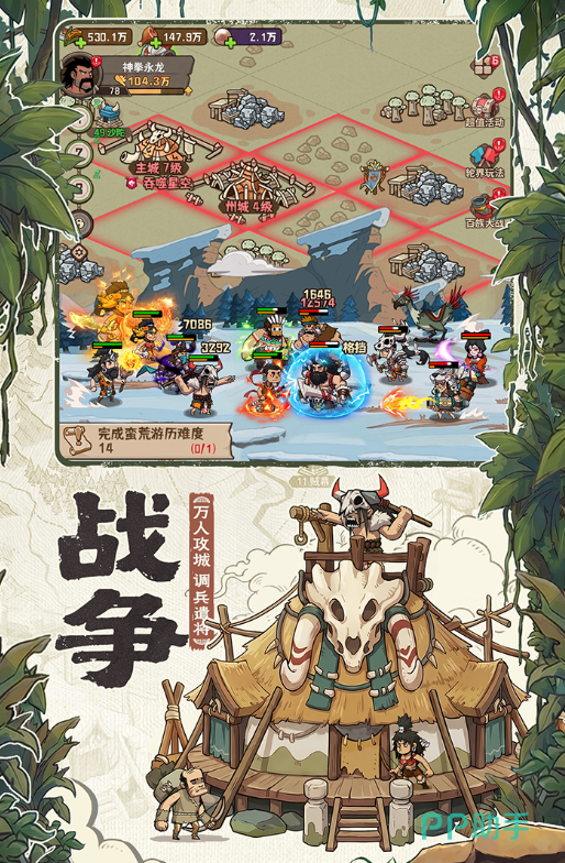 游戏开局阶段,玩家需从三大原始部落中选定其一作为初始根据地。核心目标为逐步整合其余两大阵营,接管其领地、人口与战略资源,延续文明火种。PVP对抗采用实时宣战机制,胜方可按战果比例获取敌方封地;同时支持多元成长路径——包括野外探索采集、副本攻坚、事件任务等。角色养成方面,主线推进可稳定解锁基础英雄,高阶单位则可通过召唤符随机抽取获得,不同组合将显著影响战术策略纵深。