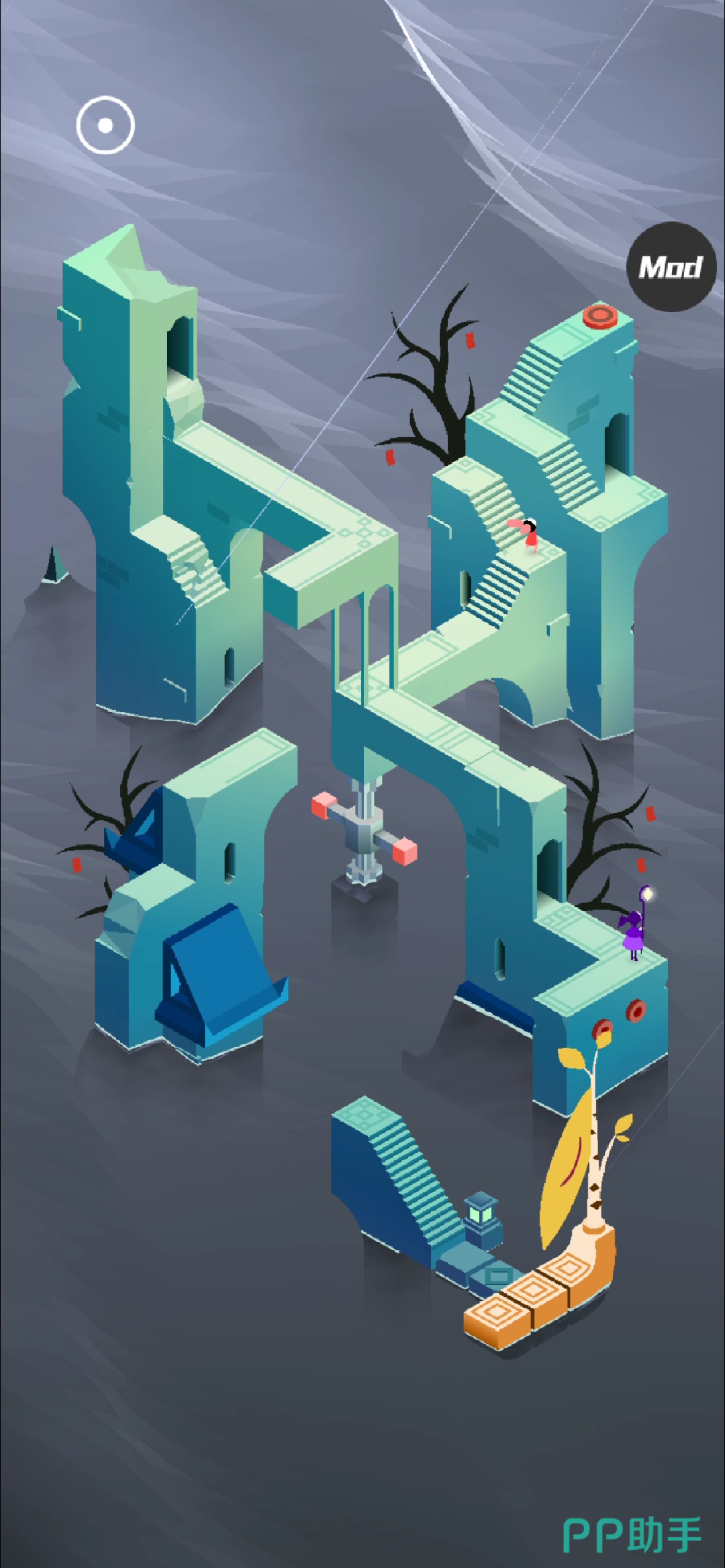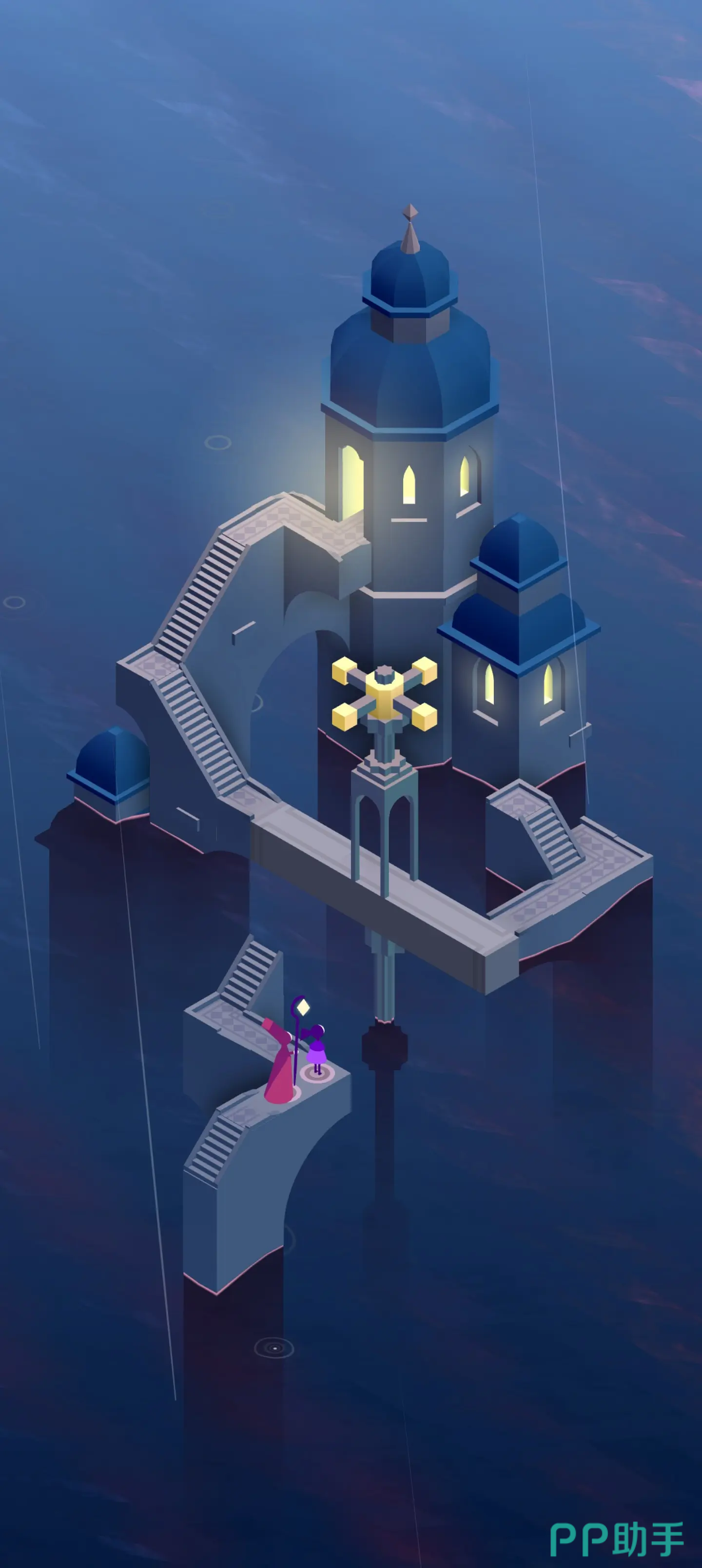 在玩法层面,《纪念碑谷3》进一步拓展了解谜维度。部分章节引入多角色协同操作机制,例如需同步操控两个视角中的角色触发联动机关;而“神殿”一章中,光之源碎裂后,玩家须在倒计时内重构完整光路——光影变化不再仅服务于美学表达,更成为推动叙事的关键变量,实现解谜行为与主题表达的高度融合。“拯救生命”的核心母题,正通过这种具象化的空间重组得以具现,使每一处机关都承载情绪重量。