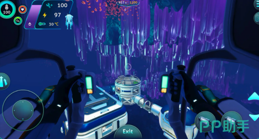 完成基础补给后,依据PDA导航系统指引,迅速前往坠毁吊舱。该结构体为前期唯一具备完整生存支持功能的固定据点,内置工作台、氧气补给站,并可解锁包括防寒服、水下推进器、扫描仪在内的全部基础蓝图。整局游戏中,体温管理、氧气续航与移动效率构成三大不可忽视的底层生存机制:水下环境本身不直接降低体温,但暴露于冰层裂缝或强寒流区域会加速失温;建议早期合成防寒布料并升级为简易防寒服,中后期需部署基地加热器及恒温模块;食用炽热的百合羹等热食可使体温恢复速率提升至每秒+0.8℃;而氧气条数值则直接决定单次下潜时长上限,任何远距离探索前均须确认供氧装置处于满载状态。