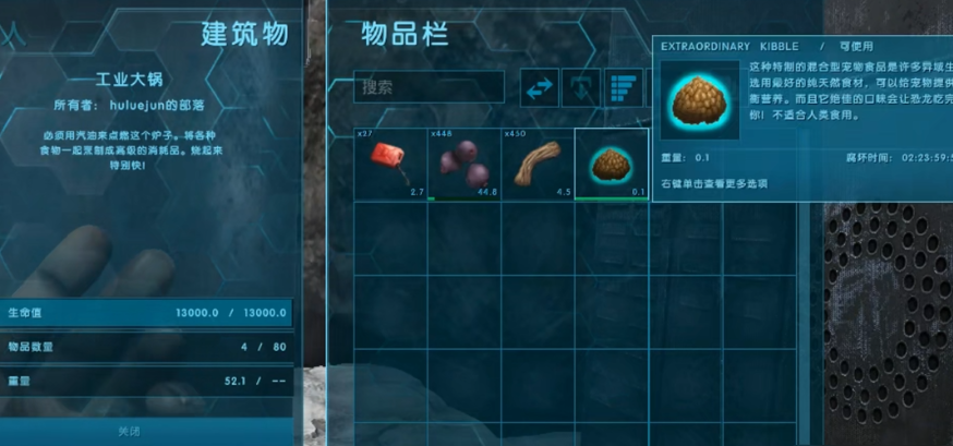 饲料是影响驯服成功率与效率的关键变量。经实测验证,异特龙蛋饲料为当前版本驯服狮鹫的最优选择,其效果显著优于其他常规饲料。该饲料需通过合成获得,标准配方为:1个土豆、1份优质熟肉干、2颗紫色浆果、3单位纤维,并添加适量水进行调制。