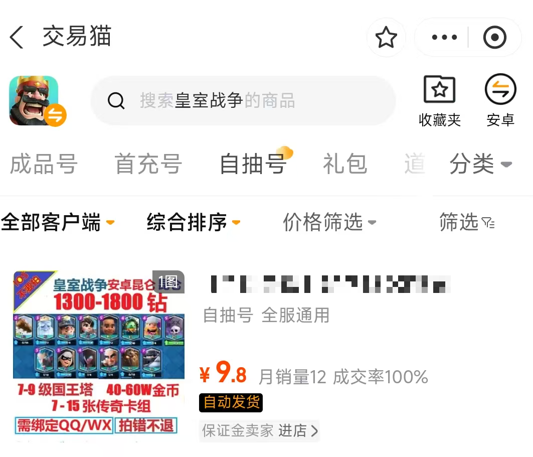 综上所述,在当前皇室战争账号交易市场中,交易猫凭借严格的审核标准、透明的验证流程、灵活的价格工具、多元的账号类型及配套增值服务,已成为玩家首选的合规交易平台。若希望规避账号纠纷、信息偏差与资金风险,建议始终通过交易猫完成皇室战争相关资产交易,全程受平台永久包赔机制保护。