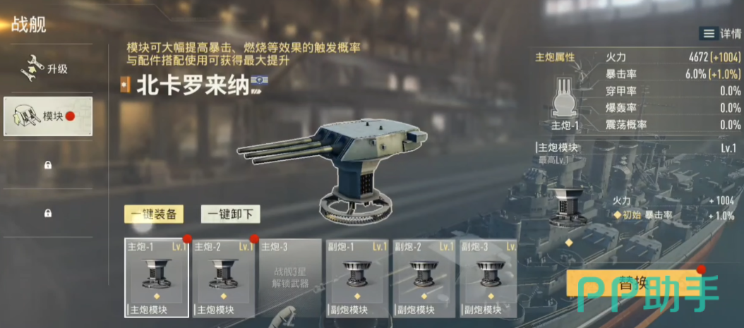 养成体系方面,北卡罗来纳遵循典型的三阶突破结构:20级解锁首段强化节点,30级开放第二层技能树分支,45级则激活终极属性增幅与专属被动效果。前期资源应优先集中于主炮与副炮模块装配——每件武器类模块均会直接提升对应口径火炮的装填速率、命中精度与伤害系数,是战力跃升最直观有效的途径。