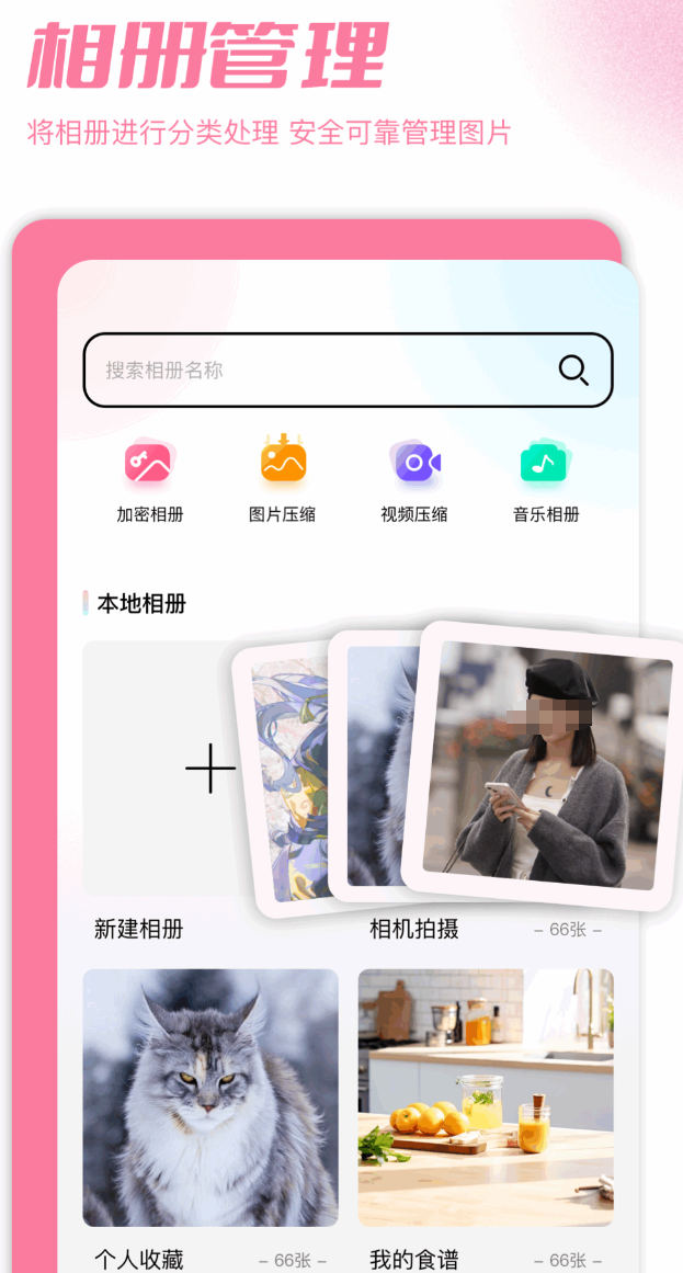专为影像类内容设计,导入后的照片将从系统相册完全隐匿,亦不会出现在第三方文件管理器的扫描结果中,实现物理层隔离。访问需通过密码或生物识别验证,杜绝误触风险。内置智能压缩引擎,在保障视觉观感基本无损的前提下显著缩减文件体积,有助于缓解存储空间压力。除基础加密外,还支持为私密相册添加背景音乐,生成具备沉浸式浏览体验的多媒体相册。