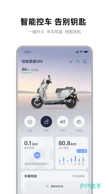 雅迪官方推出的智能管理平台,全面兼容旗下符合新国标的电动自行车及电轻摩车型。支持实时查看电池剩余电量、当前定位坐标、历史行驶里程与完整轨迹回放;内置多重防盗机制,异常移动触发即时告警推送,兼顾日常监护与安全防护双重需求。