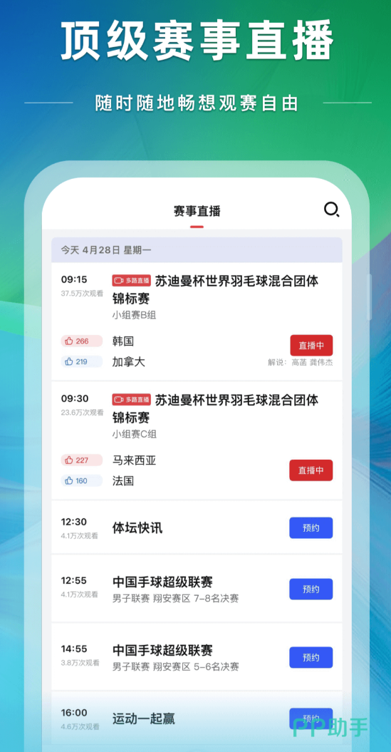 专注小众高观赏性项目与全球特色赛事,拥有乒乓球、羽毛球、台球、搏击类赛事、MotoGP、环法自行车赛等独家转播权,年均直播场次超15000场。解说团队融合现役运动员、奥运冠军、退役国手及资深评论员,风格多元可选。创新推出多视角直播模式,篮球赛事支持全场广角、篮板俯拍、球星跟拍三种画面自由切换,拓展观赛维度与临场感。