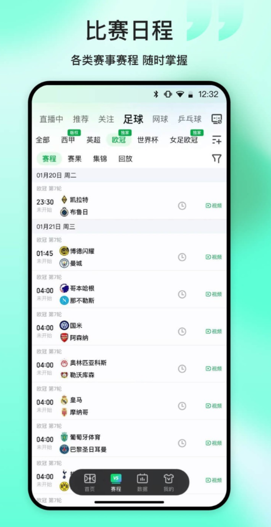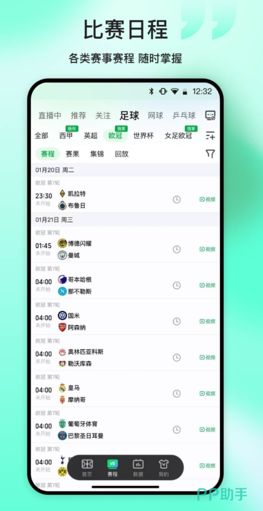聚焦国际高水平足球与网球赛事,持有英超、欧冠、意甲、法网、温网等关键版权资源,由原新英体育升级整合而来,版权结构扎实。画质最高支持4K超高清,提供国语、粤语、英语三语解说切换功能,提升观赛代入感。具备毫秒级精准回放系统,支持按秒定位关键镜头;智能集锦自动生成技术,可快速提炼全场高光时刻,适合碎片化时间高效掌握赛况。