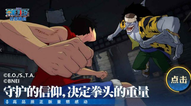 游戏讲的,还是路飞那帮人的冒险故事。大海盗时代背景下,路飞为了找到ONE PIECE当上海贼王,带着索隆、娜美、乌索普、山治、乔巴这些伙伴,一路闯荡伟大航路。玩家跟着路飞的航线走,从风车村开始,重温原作剧情。除了草帽团主角,鹰眼、艾尼路、克洛克达尔、卡普、巴基,这些强力角色都能招募。连MR.1、Ms.双手指、MR.3、贝拉米、阿金这种配角也做进去了,角色阵容挺全的。