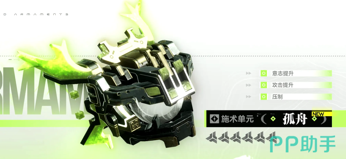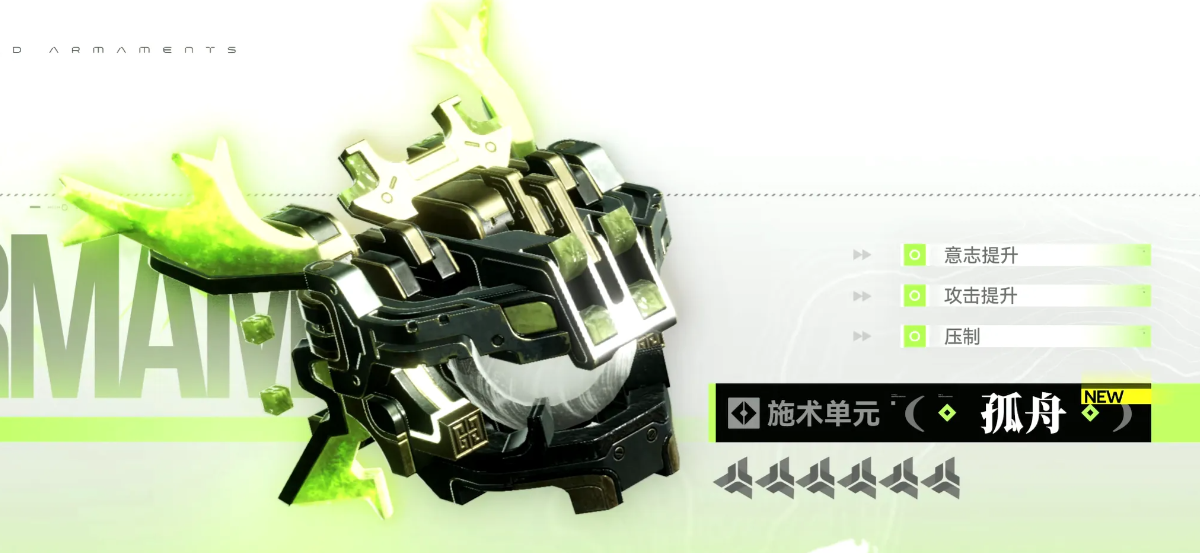 “孤舟”采用息壤复合材料打造,在结构稳定性与能量传导效率方面实现突破。基础词条包含显著的意志提升与攻击提升,直接增强施术者源石技艺释放强度。核心被动效果名为“压制流霆”,可提升装备者造成的电磁伤害。