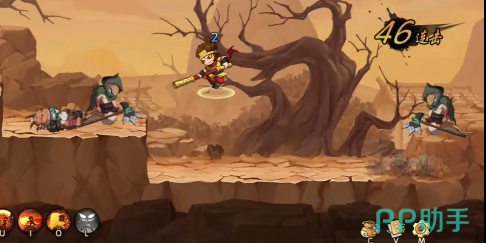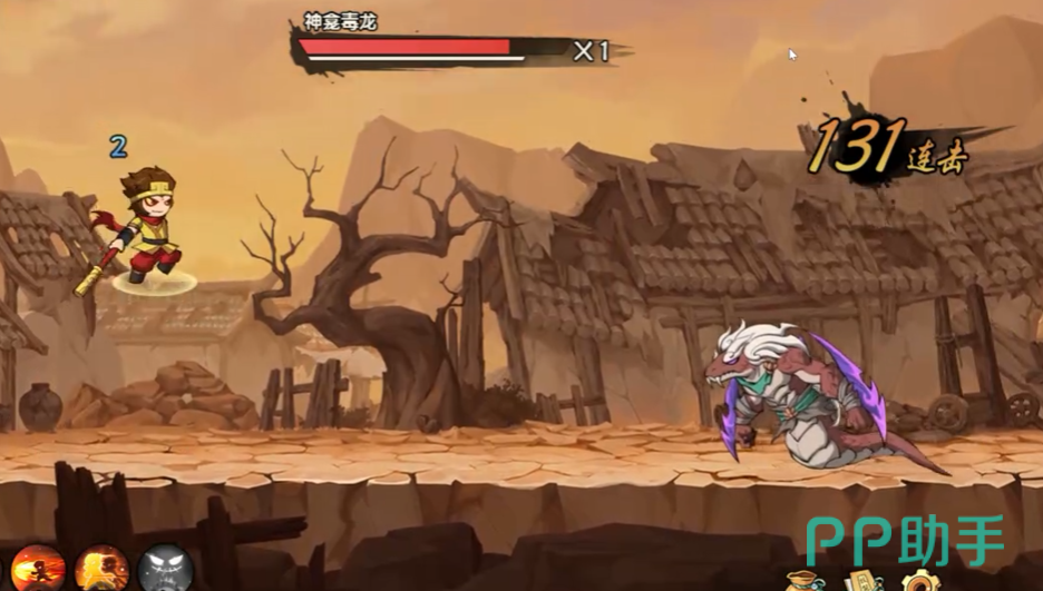 继续向地图深处推进,抵达破败民居区域时将遭遇首批强化敌人——共4只野怪。该批次单位拥有更高基础血量与攻击数值,建议切换至技能连招模式:以“定身咒”起手控制,接“金箍棒横扫”打出范围伤害,再配合“筋斗云闪避”调整站位,实现高效压制。击杀完毕后无停顿,立即刷新6只野怪,分从左右两侧包夹入场。此时需重点利用孙悟空二段跳与位移技能穿插走位,避免被围困,维持输出循环即可稳定压制。