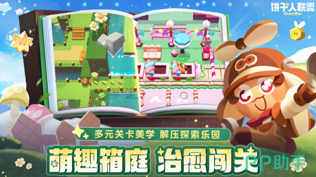 游戏核心玩法围绕“松饼塔”展开——一座垂直延伸的多层结构关卡系统。每一层均为独立箱庭式地图,涵盖森林糖霜区、巧克力熔岩带、奶油云顶平台等风格化场景。玩家需操控饼干小队在环境中自由移动,触发机关、破解谜题、开启隐藏宝箱,并逐步解锁通往上层的传送门。随着层数提升,敌方单位类型与AI行为逻辑同步进化,最终Boss战需配合技能节奏与站位调整完成高强度协作输出。