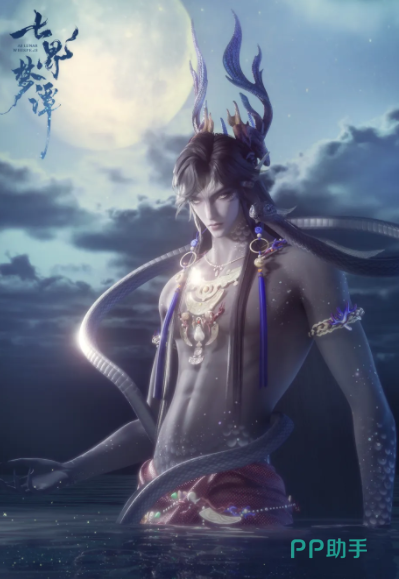 海潮生——深海异族少年,出身静水无澜的幽渊底层。不同于族中安守深境的常态,他主动挣脱“无风无浪”的宿命闭环,溯流而上,闯入人妖共存的动荡大世界。其形象以冷调鳞纹覆体,额间嵌有水脉结晶饰件,肩臂缠绕一条通体漆黑的灵蛇,既为本命契兽,亦是其孤绝意志的外化表征。该设定严格遵循“深海水妖”原始志怪定位,未作现代性解构。