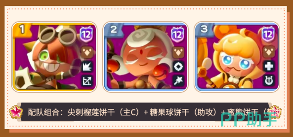 推荐阵容三:火系速清流。草莓麻薯饼干担任主C,配合樱桃饼干的范围灼烧与桃子饼干的攻击增益,最大化其召唤物技能的输出潜力;该组合具备快速清场、高额AOE、持久作战三大特性,适配多种极限战环境,包括高血量BOSS战与密集小怪波次。麻薯饼干在双重增益加持下,召唤单位伤害倍率显著提升,配合樱桃的持续燃烧与桃子的属性强化,形成稳定高效的输出闭环。