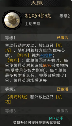 阵容布阵有明确站位逻辑:高顺不占用追击格,袁绍与黄月英需占据全部追击格位,确保技能释放频率最大化。此外,黄月英3级天赋激活后,“机巧”效果正式生效,此时若敌方单位附着≥2只机巧,所有召唤物(含袁绍石炮、高顺所召单位)均享受伤害加成,真正实现全队召唤生态的统一增益。