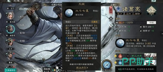 在高端对抗环境中,摇光天赋展现出决定性压制力——针对依赖高频技能释放的敌方核心单位(如多段连招输出或瞬发辅助),可概率降低其关键技能的触发成功率,实现非硬控式的“软封印”。该机制对敌方战术轴心形成精准打击,在竞技场、巅峰对决等高对抗场景中往往成为逆转胜负的关键支点。值得注意的是,诸葛亮的成长曲线平滑,所有天赋效果(含北斗七星激活概率)均随角色等级提升而同步增强,全程无明显弱势阶段,养成投入回报率极高。