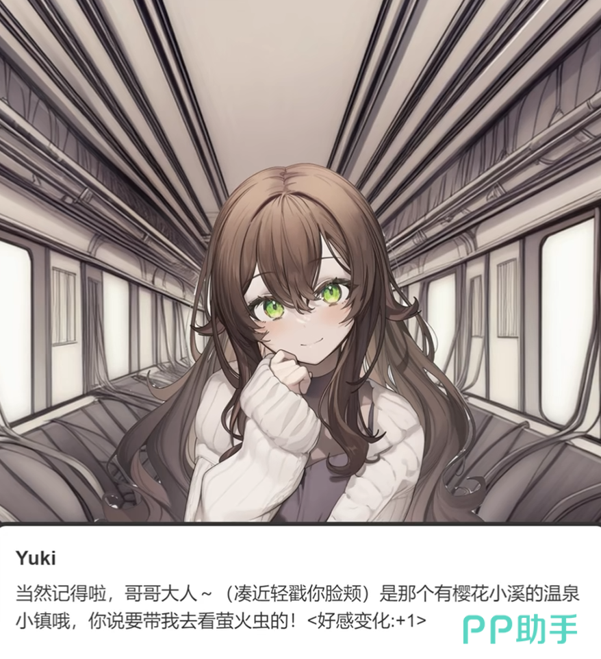 旅途中设有多个关键互动节点。例如在前往温泉小镇的火车车厢内,系统将触发专属对话事件:当提及“樱花小溪”这一地标时,Yuki会主动提出夜晚观赏萤火虫的愿望,并同步增加1点好感值。此类设计巧妙串联前期承诺与当下行动,增强剧情逻辑闭环;同时,所有对话选项均影响Yuki的情绪状态与好感增长幅度,建议优先选择温和、关切、支持类回应,以维持正向情感曲线。