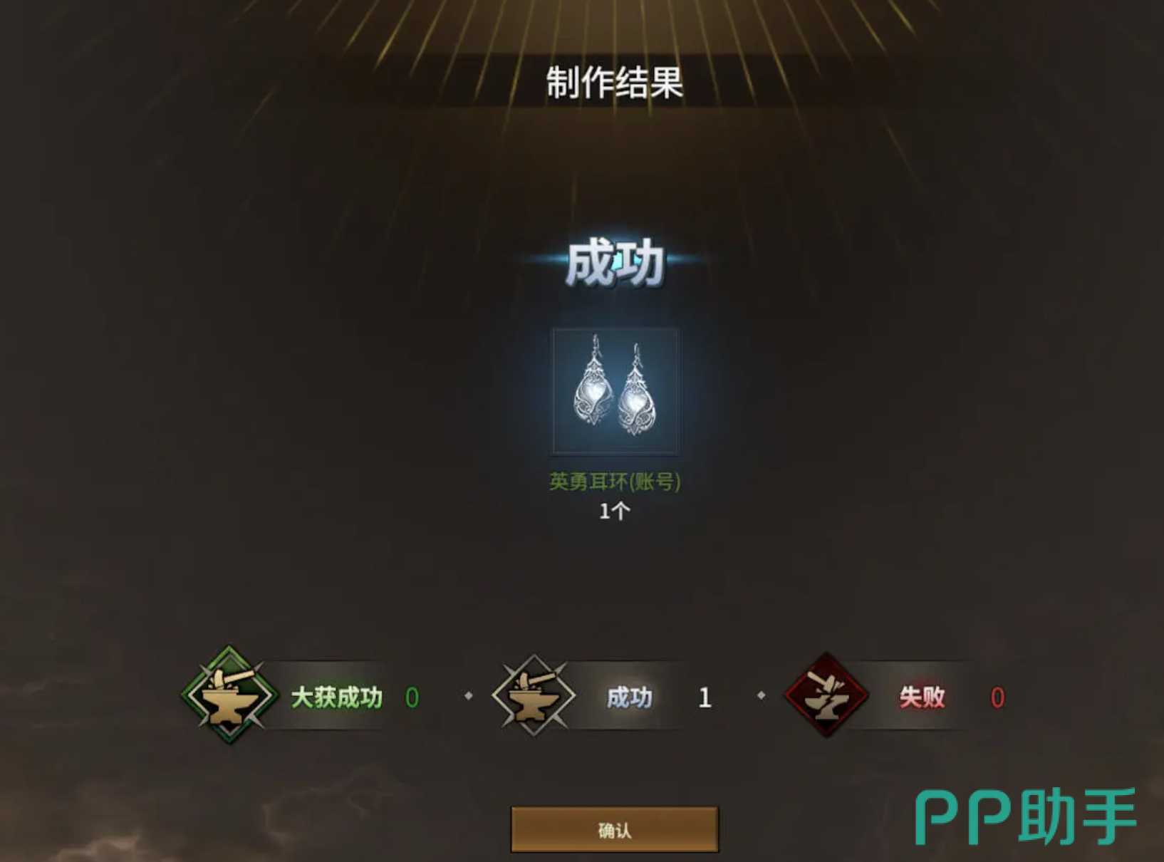 每次制作结果具有概率机制,共设三种判定:失败、成功、大成功。若判定为失败,则所有已投入材料全部消耗,不产出任何物品;若为成功,则生成一件绑定装备,仅限本账号使用,不可交易;唯有触发“大成功”,方可产出一件非绑定成品,既可用于自身战力配置,亦可在游戏内交易市场自由上架出售,转化为稳定金币收益。