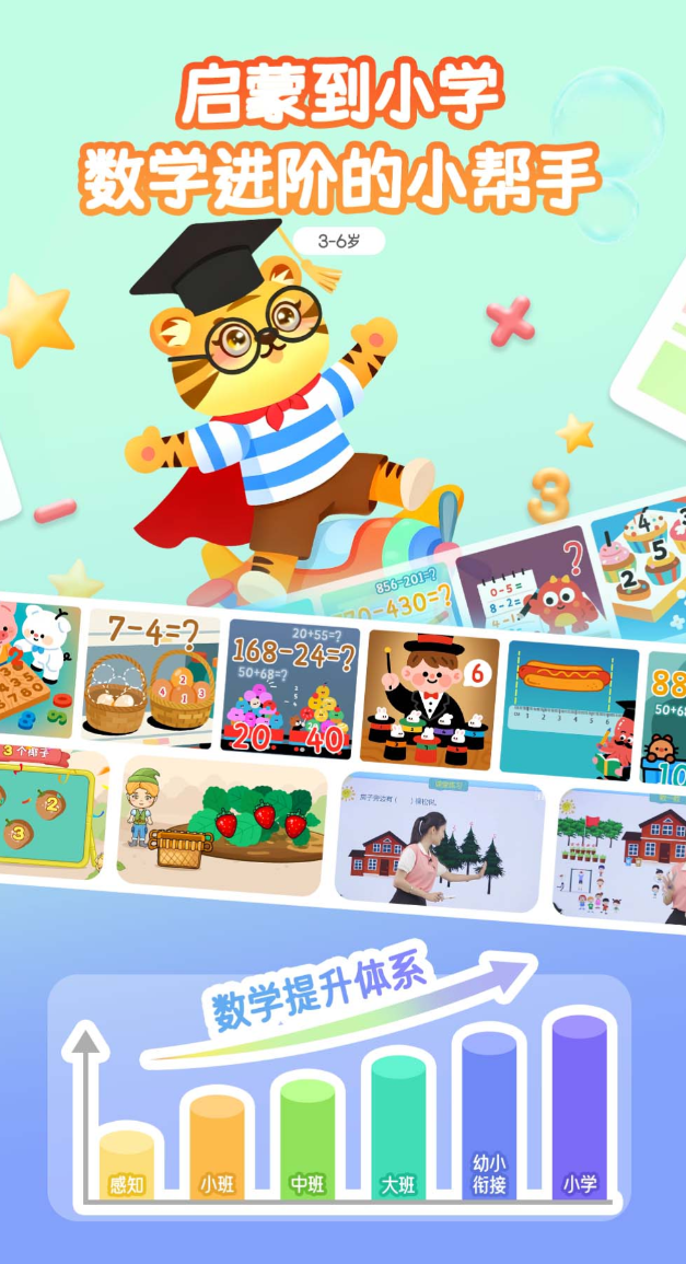 面向低龄段(幼儿园大班至小学二年级)儿童设计,以具象化元素构建数学认知:用苹果数量演示加法合并、用小熊分糖果讲解减法含义。交互形式包括翻牌配对、拖拽比较、听音选数等,强调多感官参与。课程结构遵循皮亚杰认知发展理论,从“点数”“序数”起步,逐步过渡到20以内进退位加减,再延伸至百以内混合运算,难度梯度平缓。智能出题算法实时响应作答表现:连续两题正确则提升数值范围或增加步骤,单次错误即切换同类变式题巩固基础。