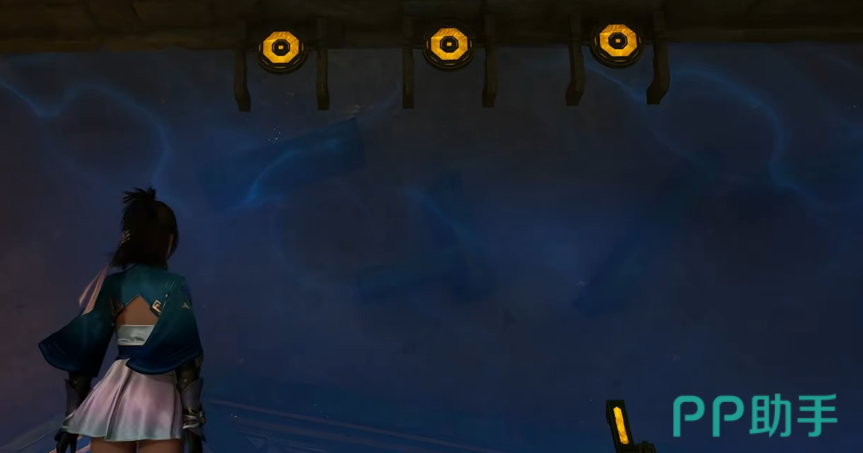 此时切勿返回原路径。正确脱出方式为:在宝箱所在位置向上垂直游泳,抵达上方平台后,将面对一组圆盘操控机关。该机关通过控制墙体内部小球位移实现解锁,目标是使小球最终停驻于左侧区域。