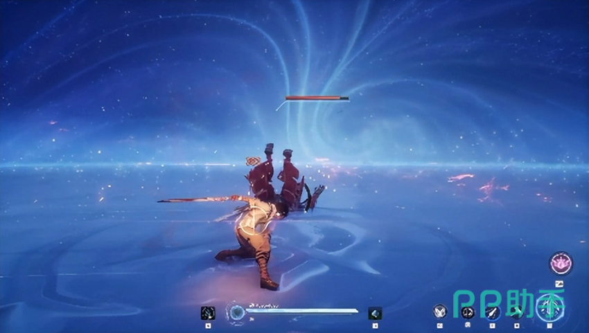 被动技“神兵万化”赋予技能追加机制:任意技能命中后可触发追加技,成功命中则下一次普攻升格为破命击;破命击不仅提升单次伤害,更是共流能量的核心获取方式——当蓝色能量条蓄满,或队友释放终极技能时,即可激活共流技。共流技支持三类武器形态切换:环(适用于存在高度差场景,专精空中压制与连段延伸)、枪(中远距离突进,强调精准切入)、锤(贴身范围爆发,主打高密度AOE输出)。各主动技能均与对应武器形成绑定逻辑。