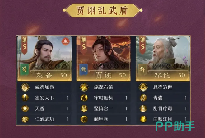 贾诩适配性强,尤其契合刘备+华佗双辅助体系。刘备稳定提供怒气支持,保障贾诩高频释放主动技;华佗持续治疗与减伤进一步提升容错率。在对抗诸葛亮、张郃等依赖技能节奏的武将时,贾诩的“乱武”干扰能力可有效打断其关键技释放节奏,形成战术压制优势。