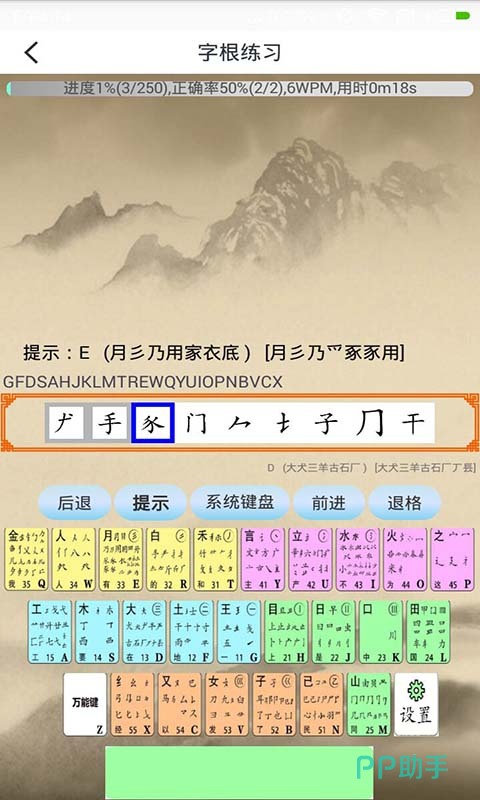 不想只专注一种输入方式,想把拼音、五笔和指法一起抓的,这款更合适。里面的课程分基础指法、高频词组强化、长文本实战三块,准确率和速度都设了达标线,过了才能解锁下一关,不是随便刷刷就能过的。其中的指法训练按人体工学来,左右手分工和键位对应,都标得很清楚。五笔用户有单字根定位和词语拆分的专项路径,输入出错时,会自动为你高亮,并展示标准编码,反馈很直接。