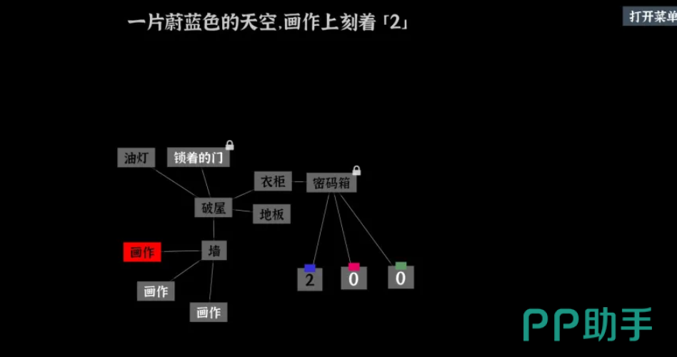游戏的核心玩法就是把文字游戏、解谜和密室逃脱融合在一起,玩家所面对的不只是简单的找物,而要依靠严密的逻辑思维去整合信息。游戏里的线索藏在文字的缝隙里,玩家要经过调查不同的词条来延伸出更多的线索,从而形成类似思维导图的解谜路径。玩家需要用蜡烛燃烧时间,来了解物体质量、串起几个房间的线索,以找到复杂机关的密码。