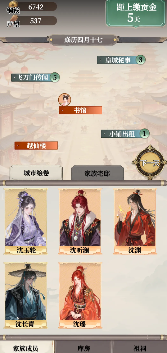 从核心玩法上来说,游戏把人物养成和家族建设这两部分结合了起来。养成上玩家要依照所选路线,全方位地培养神童的各种属性和技能。无论是科举入仕所必需的经史子集,还是修仙问道所必需的灵根感悟,抑或是统管军队所必需的兵法韬略,都必须经过精心的安排。与此同时,玩家还要走出祖宅,通过经营茶楼、兴建戏院来积攒声望和财富,还可以组建私军,为家族的重振大业奠定物质基础。