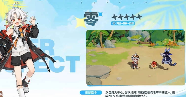 那么零后期在攻打敌人的过程当中,其实回合数越多的情况下,他自身的持续施加输出能力就会越多,这里三段式的攻击也是一次会比一次强,虽然前面两只只有50%的攻击伤害,但是最后一击这里的命中概率就非常的重要,他除了这个小技能之外,另外还有一个大招拒绝指令,这个技能用起来的话就可以给他带来更多的控制能力,使用这个技能的时候,零可以以自身为中心效果召唤出来一个范围法阵,这个法阵当中会有一些锁链出现,然后缠绕在法阵当中的敌人身上,此时造成的伤害数值会有200%的基础伤害,并且在其中给敌人添加一些控制能力。