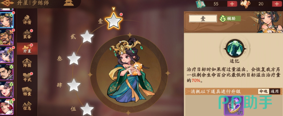 技能体系方面,【追赐】提供远程单体风属性伤害,伤害值为角色基础攻击的50%,主要用于牵制或补刀;而核心辅助技能【安恤】可为目标恢复其最大生命值15%+150点生命,并随技能等级提升同步增加暴击率加成,间接强化队伍整体输出节奏。当【追忆】天赋升至六级后,步练师对任一单位施放治疗时,该目标将获得15%攻击力加成,持续2回合——此增益可叠加于主C或副C,形成“治疗即增益”的战术闭环。