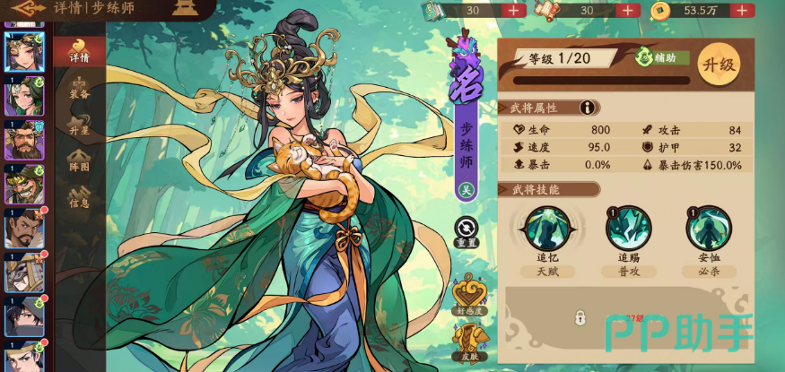 步练师在《三国杀·武将觉醒》中虽为紫色品质武将,但实战表现远超品质限制,常被玩家与无双级武将横向对比。其核心价值不在于爆发输出或控制压制,而在于稳定、高效且具备联动性的团队辅助能力。因此,合理理解她的功能定位,是前期资源有限时组建高容错阵容的关键策略——尤其在尚未获取高阶无双武将前,步练师可作为过渡期乃至中后期的主力辅助担当。