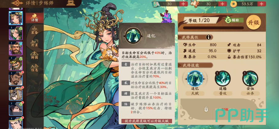 总结而言,步练师并非万金油型武将,而是高度特化的团队枢纽。她的强度不取决于单点爆发,而体现在治疗利用率、增益覆盖率与节奏掌控力三重维度。唯有锚定辅助定位,围绕速度、治疗量、生命加成构建养成路径,才能最大化释放其战略价值,在各类副本与PVP场景中成为不可替代的战术支点。