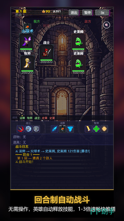 游戏核心围绕“逐层挑战高塔”展开。每层均配置差异化敌人组合,击败后可获取遗物、金币及稀有材料。玩家需预先组建三人小队——职业选择、技能搭配、站位逻辑共同决定战斗走向。随着层数提升,资源压力增大,角色培养成为通关关键路径,因此稳定获取升级资源至关重要。