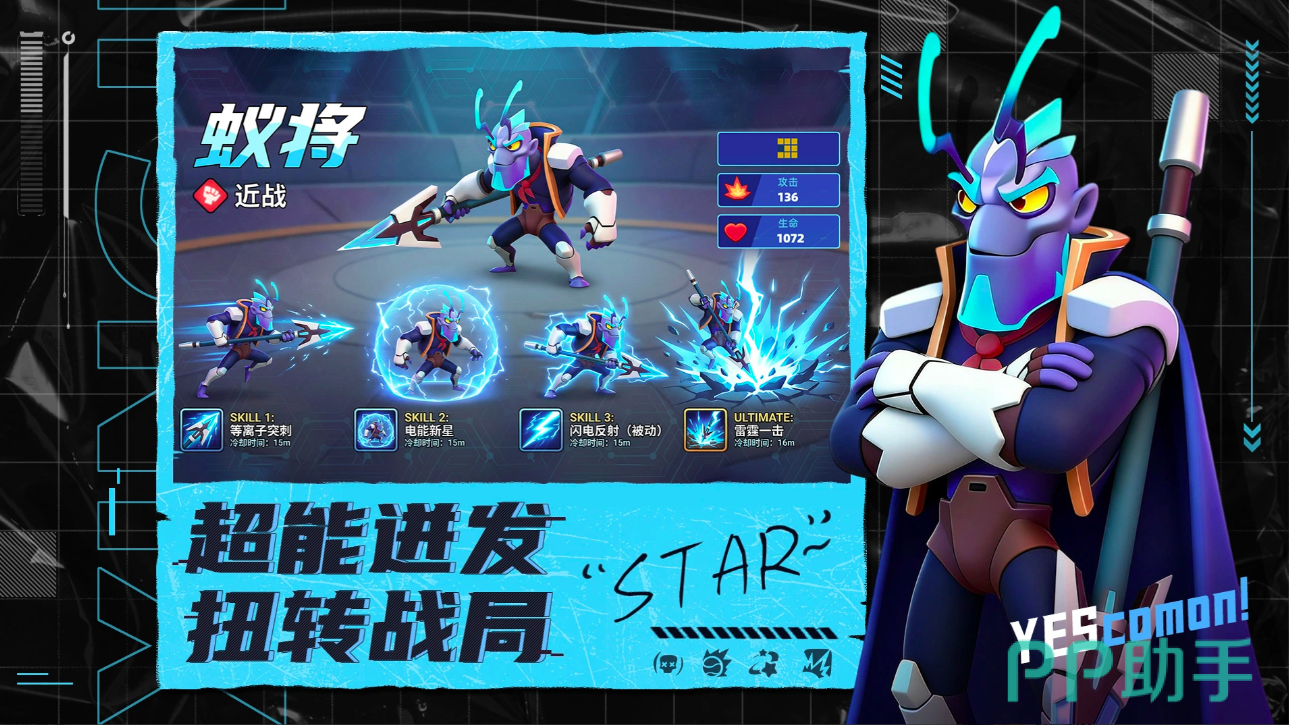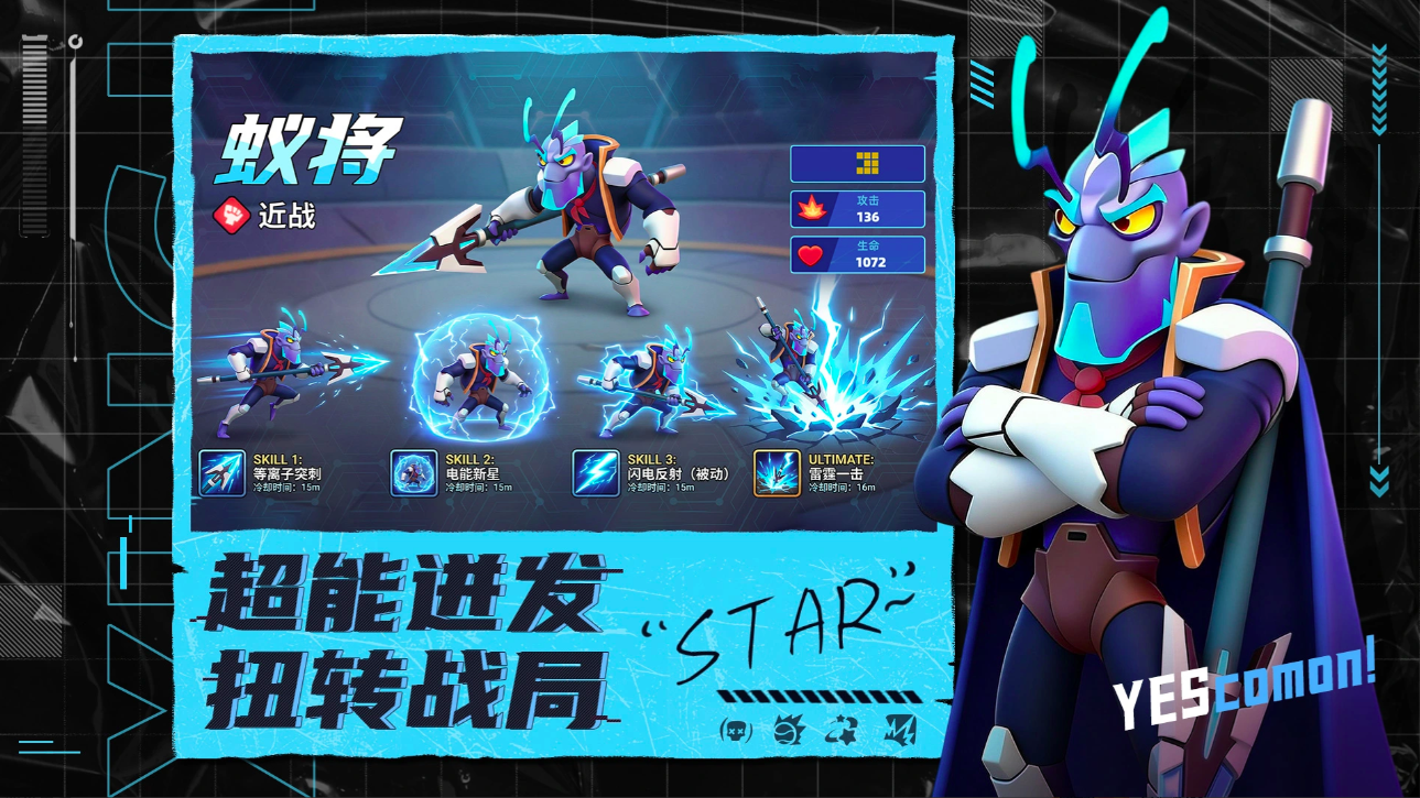 融合塔防、卡牌与实时竞技的策略游戏,大量的科幻元素加入,让游戏的整体体验感更绝,在核心玩法上更是实现了双线对抗塔防模式,玩家直接化身为星际指挥官,在对称的双战场地图上完成防御塔的部署和卡牌英雄的派遣,抵御敌人的入侵,而最终决定你能否胜利的关键数值是要看生命值的耗尽状况,这种简而易懂的游戏规则,让很多初入坑的小伙伴们大大缩短了入门时间,能够将更多的精力投入到游戏的体验当中。