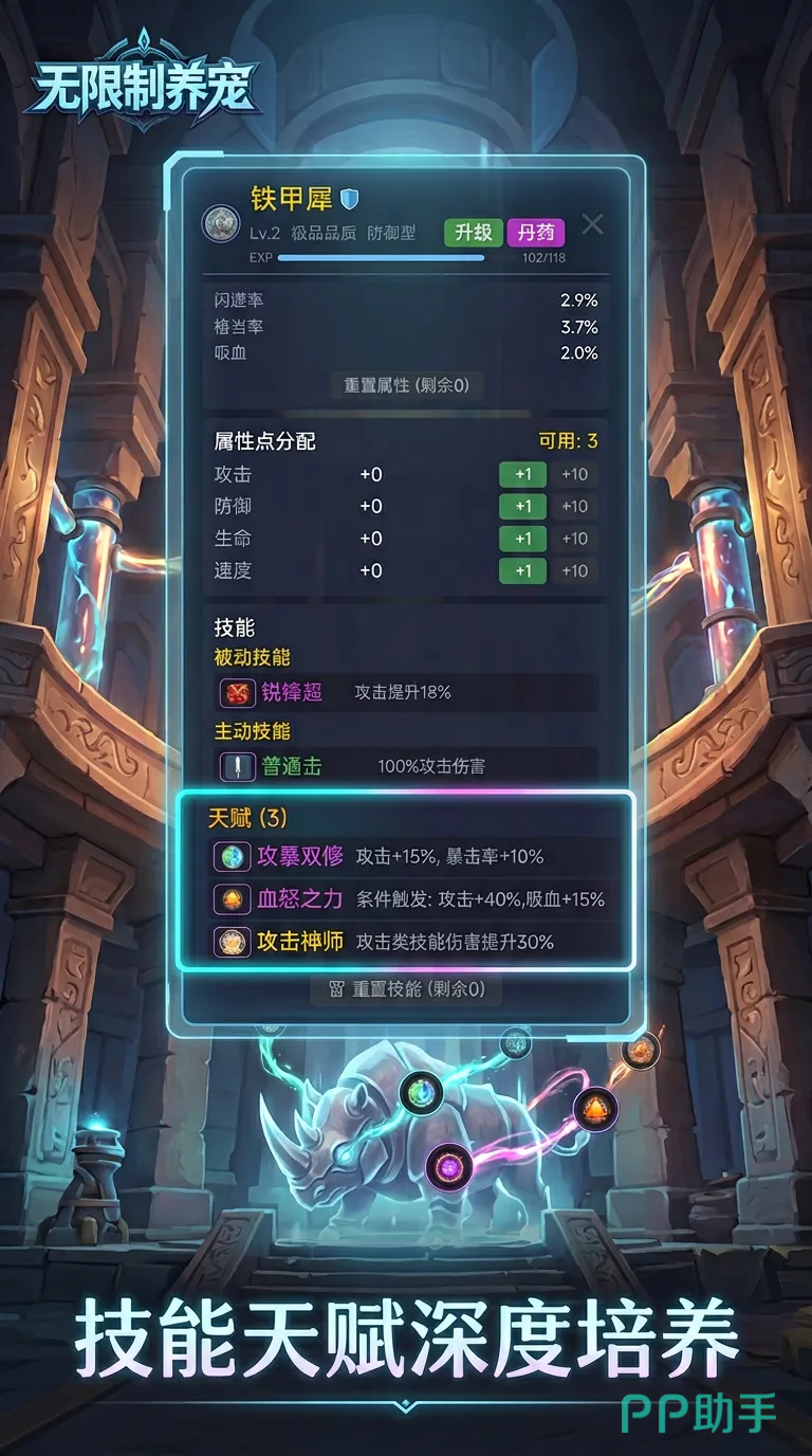 如果你热衷于收集与培养多样化的宠物角色,那么这款主打“无限制养宠”概念的手游或许正适合你。它打破了传统宠物养成类游戏中数量、品质或资源的多重限制,让玩家能够自由招募、孵化并深度定制大量个性鲜明的宠物单位。通过灵活搭配技能组合与装备系统,每位玩家都能打造出专属的战术体系,在PVE探索与PVP对战中展现独特策略风格。