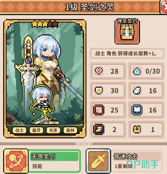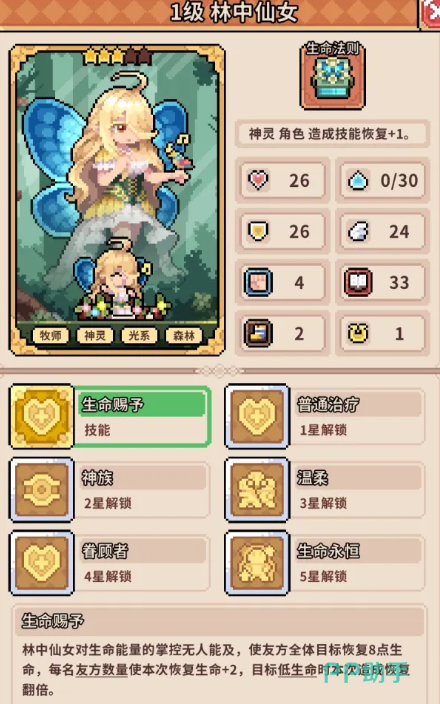 另一项关键机制是「低血量爆发」:当圣剑之灵生命值降至50%及以下时,其所有伤害将触发翻倍效果。这一设定决定了她并非传统意义上的纯输出位,而更适合部署于前排承伤——通过合理控制血线,使其在战斗中后期进入高爆发状态。为保障其持续站场能力,推荐搭配具备稳定治疗与状态叠加功能的辅助角色。林中仙女即为此类最优解:她不仅能提供持续回血支持,延长圣剑之灵前排驻留时间,还可加速“勇气”类增益层数的累积,进一步激活圣剑之灵的被动成长链路。