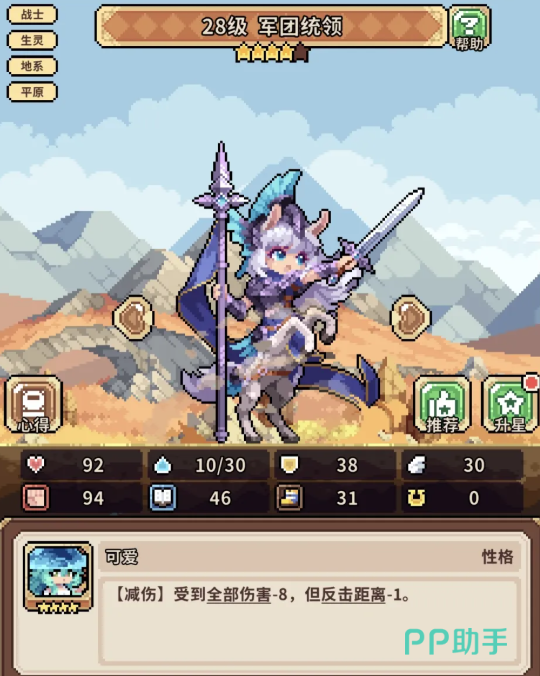 第三位为「军团统领」(俗称人马),定位为前排战士兼团队续航型辅助。其核心机制包含两部分:一是为全体友方单位提供持续生命恢复,二是施加鼓舞效果。在满星状态下,她拥有「优先行动」特性,可在高难度关卡中抢得先手,有效打断敌方关键技能。即使未达满星,其基础治疗量与鼓舞覆盖率仍足以支撑中低配阵容运转。装备选择方面,她对武器、防具、饰品的兼容性较广,无需特定套装即可激活核心功能,适配多种主流流派。