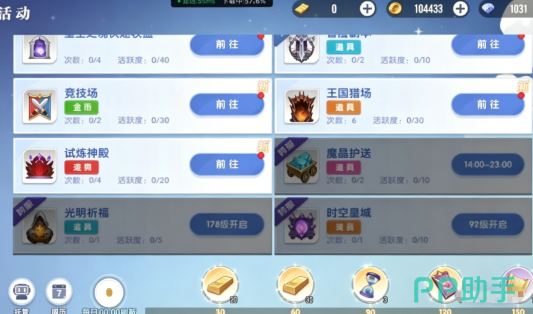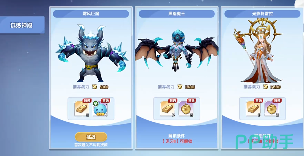 除时空星域外,游戏同步部署多元日常内容体系:涵盖资源副本、限时活动、跨服竞技及试炼神殿等模块。其中试炼神殿聚焦高强度BOSS战,各首领均标注明确推荐战力阈值,引导玩家理性规划挑战节奏。所有玩法均设有清晰目标导向——玩家可依据所需道具类型(如金币、宠物契约、稀有装备等)定向参与对应副本,提升资源获取效率。