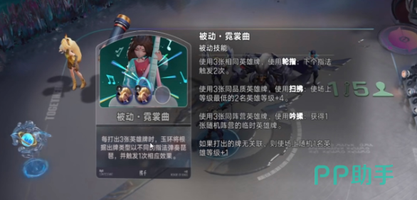 她的核心机制源于被动技能“三叠律动”:每轮打出三张英雄卡牌即触发基础效果;若三张为同一英雄,则下回合所有被动效果翻倍;若三张为同品质(如全部为蓝色、紫色或橙色),则自动为场上等级最低的两名友方单位各提升4级;若三张属于同一阵营(如全部为“长安”或“云中”),则额外生成一张随机阵营的临时英雄卡——该卡可即时用于羁绊补全或阵容过渡,大幅提升构筑容错率。