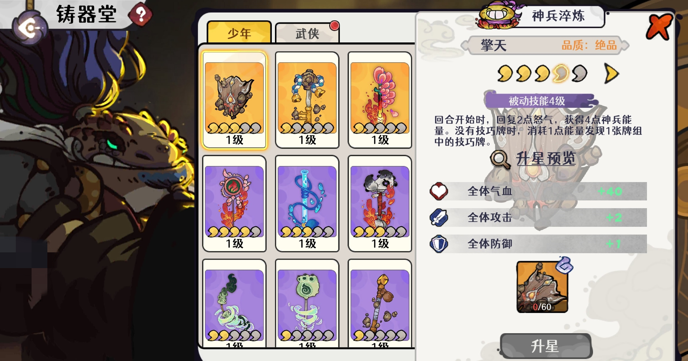 在阵容构建上,推荐采用剑冢传人、云华仙子与颜玉书仙组成三侠阵型。此组合兼顾生存与续航:双辅助角色提供持续治疗保障,剑客则承担核心输出与卡组调度职能。卡牌池优先锁定弹指一刹、裂风斩、独行刀法、振龙吼四张关键武学;神兵选择擎天为必选项,其余神兵可视资源灵活替换。配队结构可参考图示布局,云华仙子与颜玉书仙具备互换性,便于应对不同副本环境。