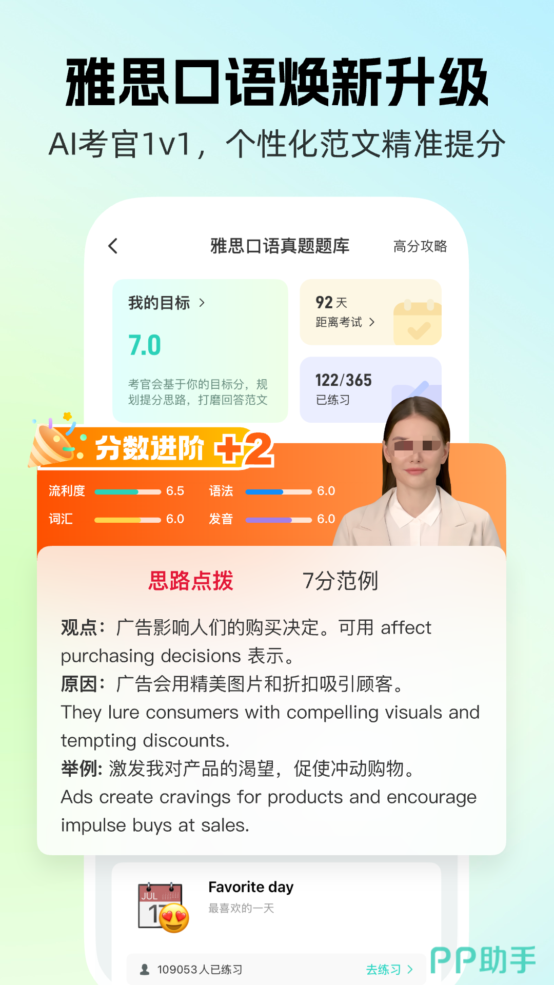 你能够通过情景对话的形式丰富自己的口语经验,同时支持智能测评。你可以实现一边听一边练,还能自定义播放,有利于及时发现错误发音。错题解析全面跟踪学生的个人知识掌握程度,从而达到提升的目的。