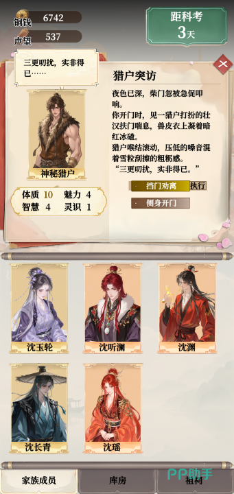游戏开局设定于一个体制僵化、纲常松动的古代王朝末期。玩家并非以救世主身份介入朝局,而是以家族继承人的身份接管祖宅,并开启一段以“培育神童”为主线的人生模拟旅程。