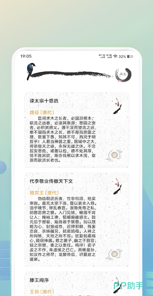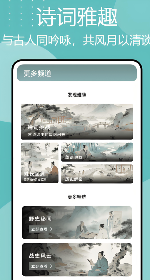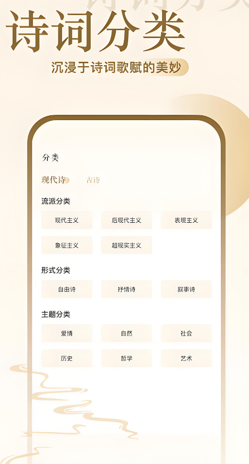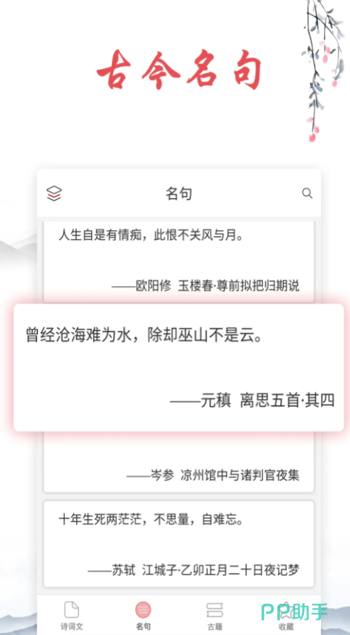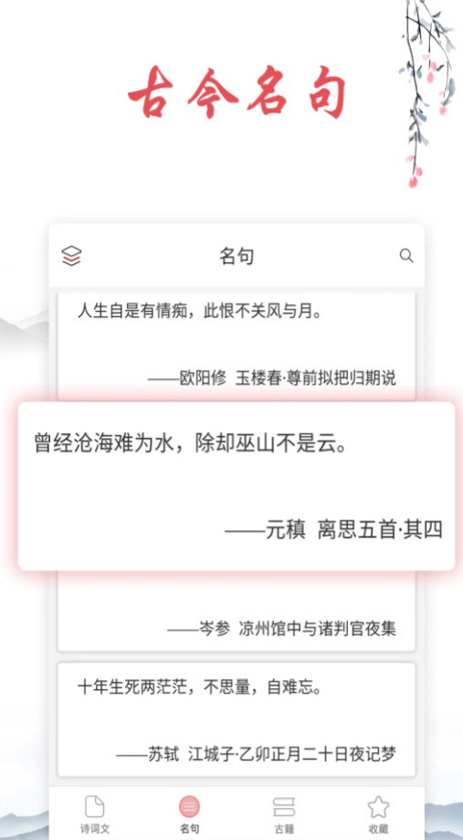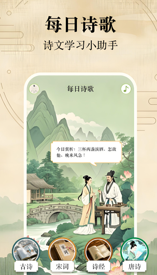 自由调整阅读模式进行随意的布局,收录的古诗词和流传古今的各种金句超过数万具,再加上水墨画的风格让画风十分唯美,对诗句创作者来说能得到静谧的创作环境以及灵感的提示,不管是下载还是阅读都没有广告的干扰,让你有更为纯粹的古诗词欣赏体验。
